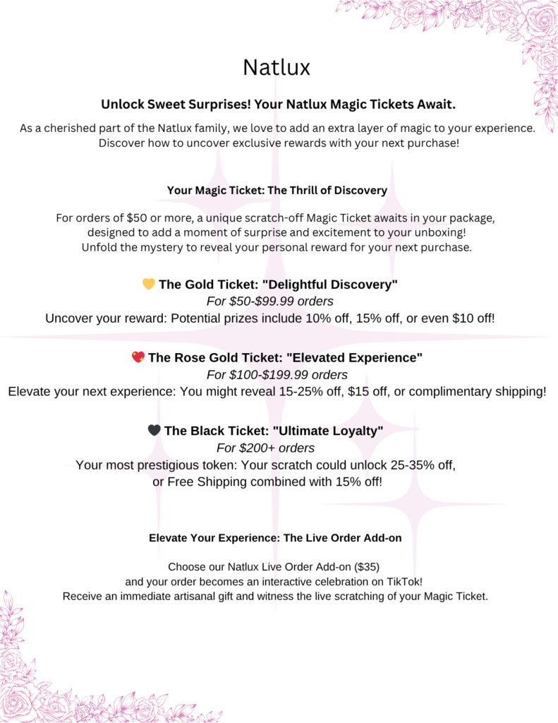 Each qualified order doesn’t just bring you closer to unlocking magical bonuses—there’s a surprise at the end! With our innovative scratch-off tickets, you can unveil additional rewards. These fun and exciting tickets are part of our commitment to enhancing your loyalty journey, allowing you to find even more delightful surprises with every purchase.